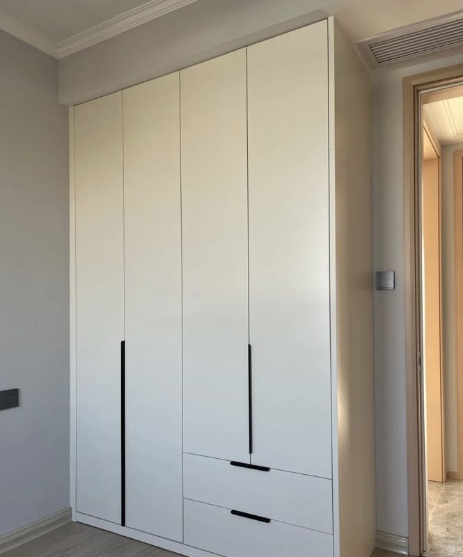 Estrutura principal: A estrutura principal de armários modernos do quarto é composta geralmente das placas, tais como a madeira compensada ou o painel de fibras médio da densidade (MDF). Estas placas têm a estabilidade e a durabilidade altas, assegurando-se de que os armários permaneçam resistentes e estáveis durante o uso a longo prazo.