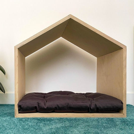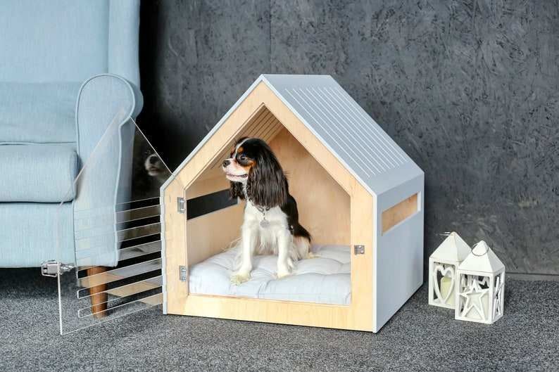 Esta mobília moderna foi projetada transformar-se a casa nova do seu cão. Seu projeto mínimo adapta-se a todo o estilo da mobília.
