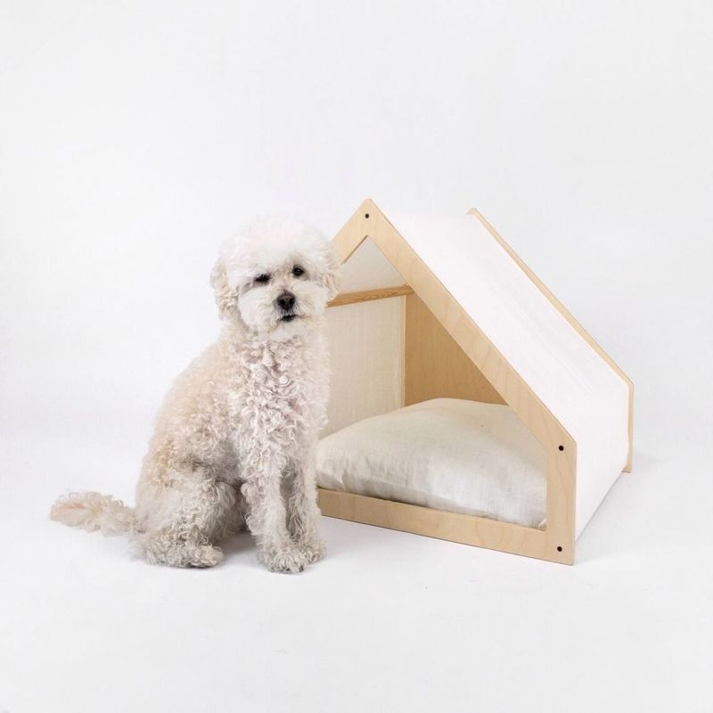 Lojas do animal de estimação ou groomers do animal de estimação: As lojas do animal de estimação ou os groomers do animal de estimação fornecem frequentemente camas dadas forma casa do cão de modo que os cães de visita possam sentir confortáveis e relaxados ao esperar ou ao descansar.
