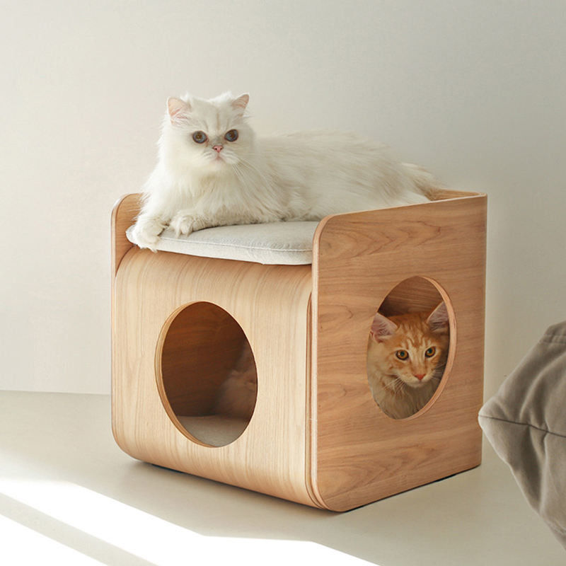 O animal de estimação de madeira nórdico da casa do gato abriga casas & a mobília de madeira luxuosas do gato da cama do animal de estimação da mobília moderna do gato