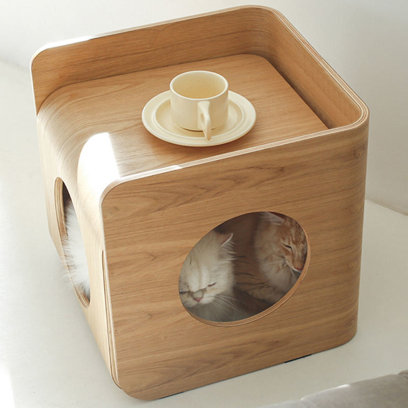Espaço interior: A casa de madeira do gato do quadrado da mobília do animal de estimação é apropriada para o espaço interior da casa e fornece um lugar de descanso confortável para seu gato. Colocado na sala de visitas, no quarto ou no balcão, a casa quadrada do gato mistura-se no ambiente familiar e cria-se um canto de descanso privado e confortável para o gato.