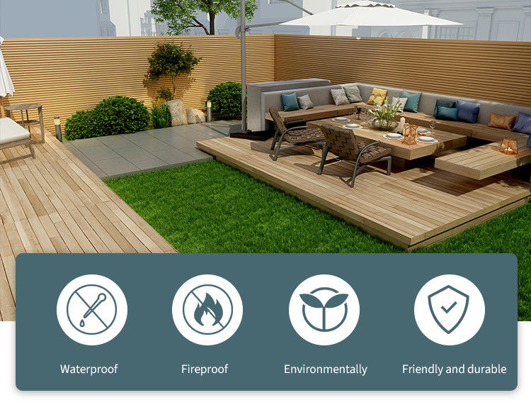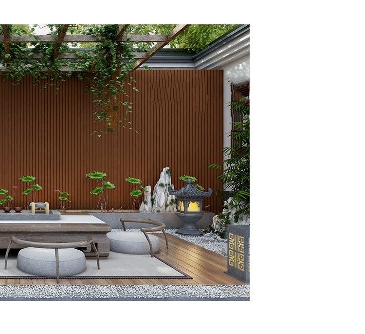 Cercas e paredes de separação: O revestimento de madeira exterior pode ser usado para decorar as cercas e as paredes de separação, aumentando a beleza da cerca e a privacidade da parede de separação. Ao mesmo tempo, o projeto da grade igualmente facilita a penetração da ventilação e da luz.