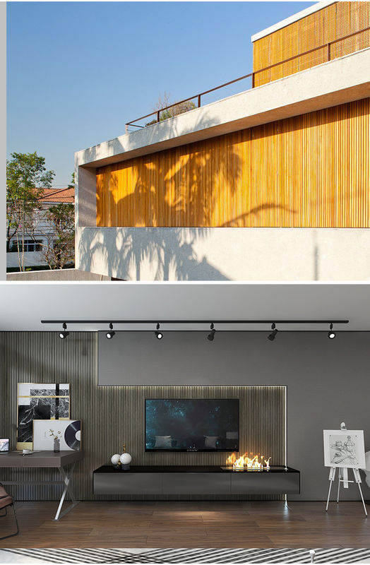 Decoração da sala de visitas e do quarto: O tipo quadro interior plástico de madeira da proteção ambiental da grade de WPC é apropriado para a decoração da sala de visitas e o quarto e outros espaços internos. Seus efeito de madeira rico da grão e características a favor do meio ambiente trazem uma atmosfera morna e natural ao espaço interior, permitindo que você aprecie um ambiente vivo confortável em casa.