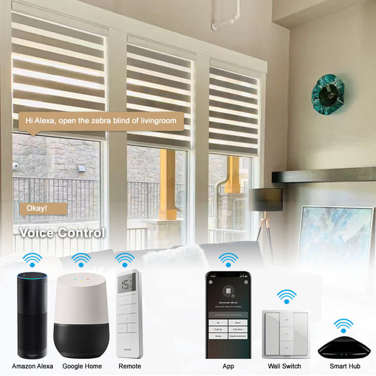 Cortinas espertas motorizadas sem corda da zebra da dupla camada da máscara da cortina de janela do escurecimento feito sob encomenda do tamanho