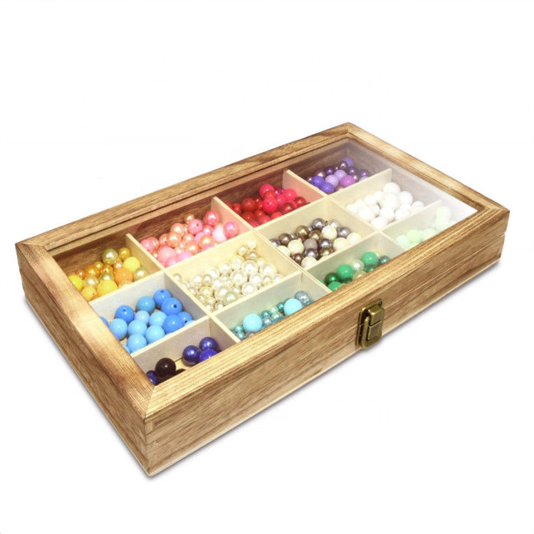 Organizador de madeira da caixa do chá dos compartimentos Lidded transparentes da caixa de madeira 12 0